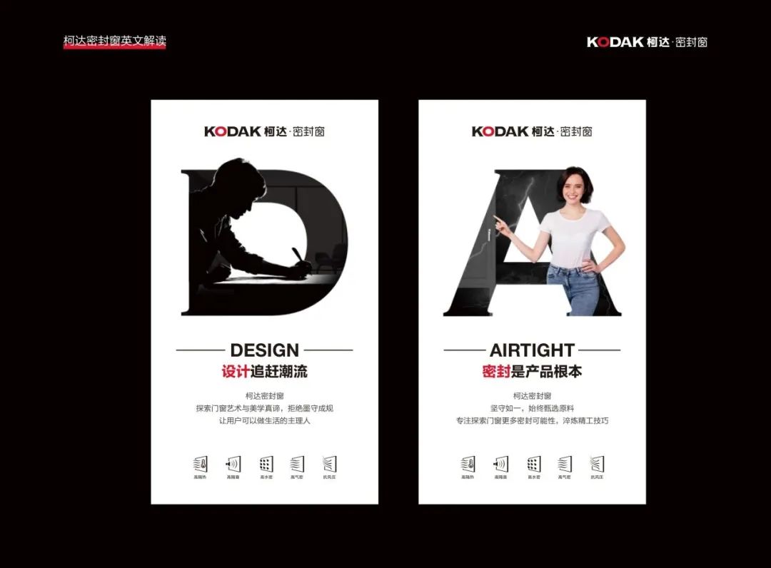 對柯達(dá)服務(wù)用戶進(jìn)行需求分析??逻_(dá)服務(wù)的用戶多屬北方,北方的氣候特點是四季分明,冬冷夏熱,全年氣溫差異大,而且風(fēng)沙較多,夏季更是有暴雨雷鳴。一扇好門窗不僅僅要滿足基本的物理層面需求,更重要的是可以解決北方地區(qū)氣候帶來的用戶精神需求。原來銷售都是通過產(chǎn)品直接面向用戶,現(xiàn)在是場景感受,就是能讓用戶在特定場景下,通過場景感受,產(chǎn)品能為用戶解決了哪些問題。 于是柯達(dá)門窗定義為“密封”概念。