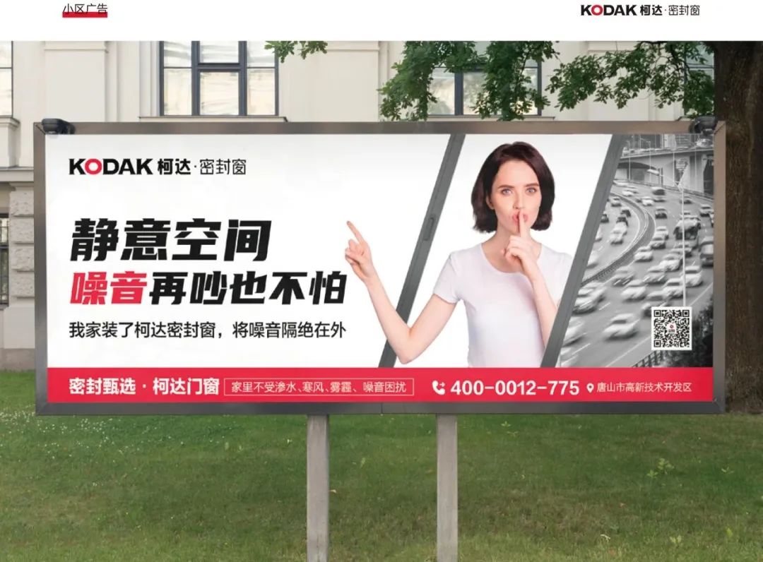小區(qū)、高炮、公交站牌、電梯、車站等不同的場景,只要是用戶出現(xiàn)的地方,就會有柯達(dá)密封窗的出現(xiàn),通過內(nèi)容和畫面設(shè)計,讓柯達(dá)密封窗出現(xiàn)在用戶的生活場景當(dāng)中,向用戶傳達(dá)【密封窗】的概念,柯達(dá)能為用戶解決了什么問題,這樣才能給用戶留下深刻印象,讓用戶認(rèn)準(zhǔn)買密封窗就找柯達(dá)品牌。